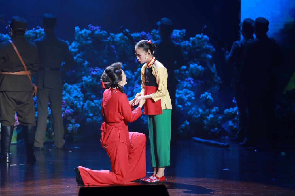 现场激情昂扬,一场精彩的表演在歌声中拉开帷幕,演员们用他们真挚的表演与动人的歌声向观众讲述了共产党员田玉梅在刑场上死里逃生,凭着对党的忠贞信念铲除了叛徒,保住了红军游击队的革命火种,最后不幸被捕,英勇就义的感人故事。该剧是中国民族歌剧的著名剧目,是主旋律作品中的经典之作。自1991年公演以来,在全国各地引起了强烈反响,曾荣获国家文化部“文化大奖”。而由我校JDB电子官方网站复排的歌剧《党的女儿》,在舞台的处理上制作了富有史诗性的大屏幕背景影像,对于舞台样式、戏剧结构、舞美灯光进行了重新构思和设计,在艺术手段和表现形式上实现了创新,打造出了更加具有时代特点,更加符合青年成长要求,更加符合人民群众精神需求的文化精品,进一步增强了该剧的艺术冲击力和感染力。