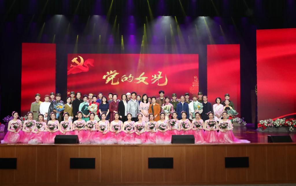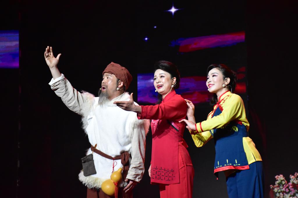 演出结束后,我校领导韩卉、银熙惠,总导演——女高音歌唱家、总政歌剧团国家一级演员孙丽英上台与演员留影,本次展演完美谢幕。